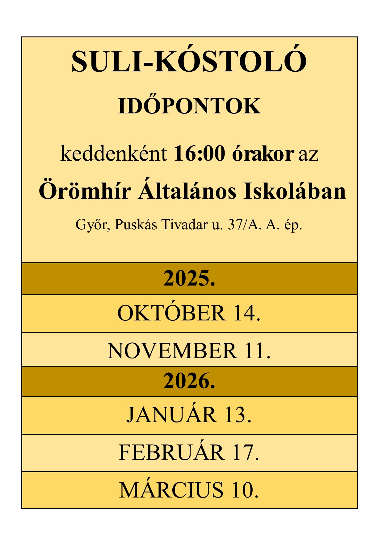 Ebben a tanévben 2 helyszínen várjuk az iskolánk iránt érdeklődő leendő 1. osztályos gyerekeket és kedves szüleiket.